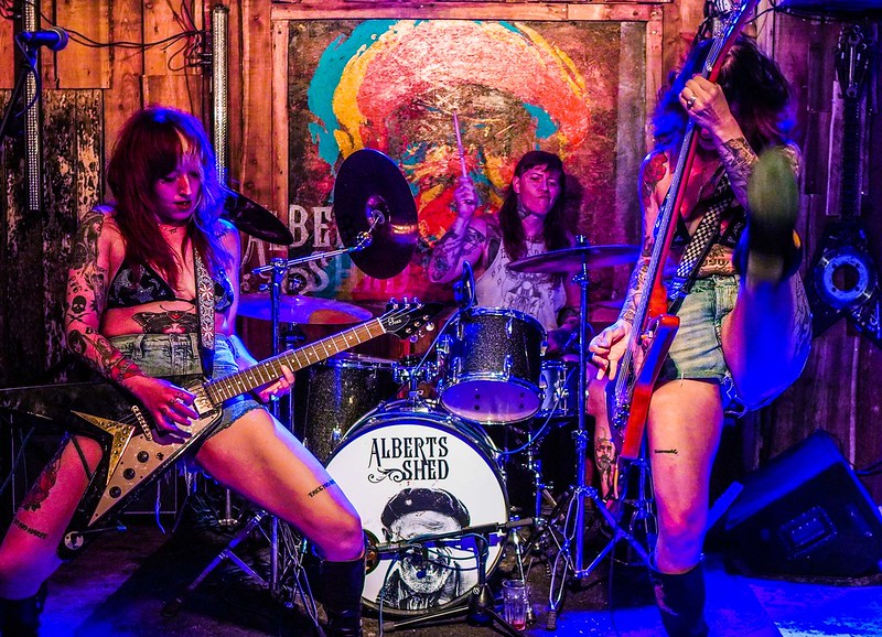 With things running late I didn’t have to wait that much longer for local band Boom Boom Womb to hit the stage. I’d never heard of them before so was intrigued to see what the Alberts Shed team had conjured up to support a high octane rock n roll and from the USA.